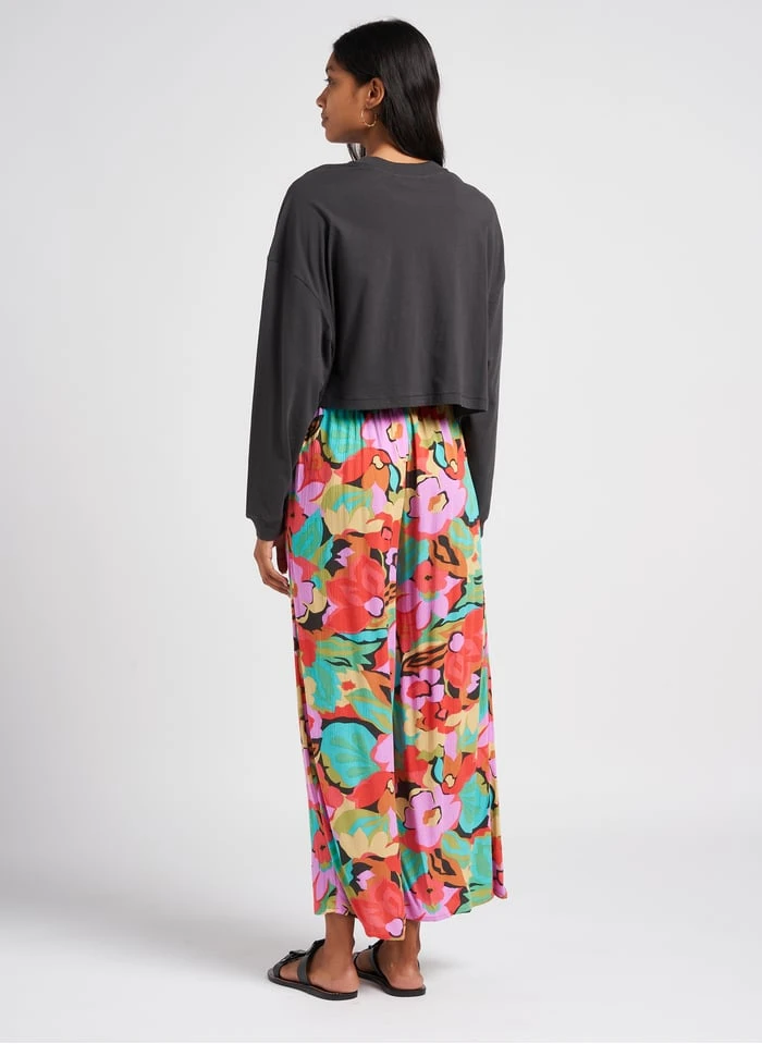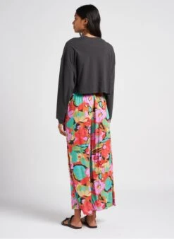 Dit model wordt aangeboden met Wijde broek van viscose met print by BILLABONG, Leren slippers met hak by CAMPER
