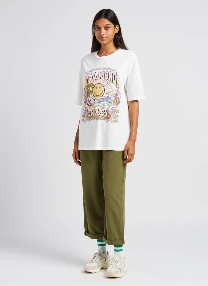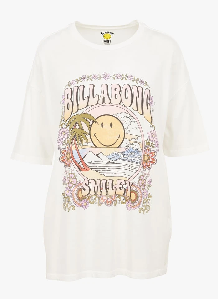 T-shirt van biokatoen met ronde hals en zeefdruk by Billabong voor Dames.