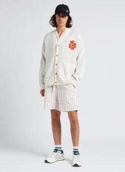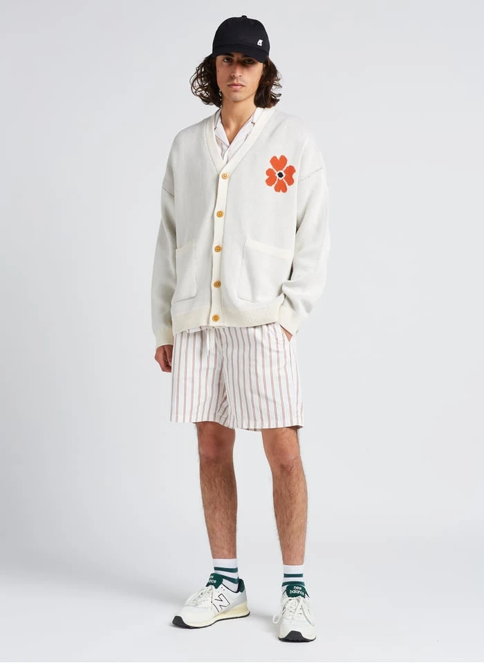 Dit model wordt aangeboden met Ruimvallende, gestreepte katoenen blouse by LES DEUX, Regular-fit, gestreept, katoenen short by MINIMUM, Lage sneakers – 574 by NEW BALANCE, Katoenen pet by K-WAY