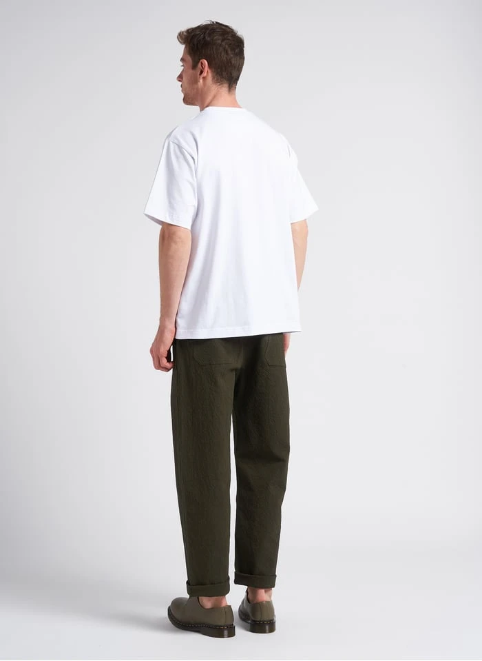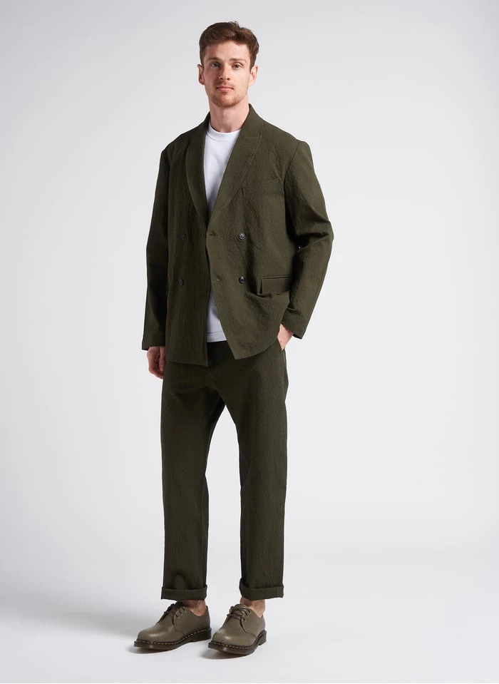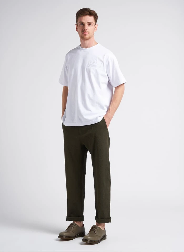 Dit model wordt aangeboden met Rechte broek katoenblend by HOMECORE, Derby’s van ledermix by DR. MARTENS