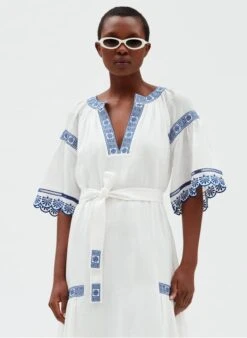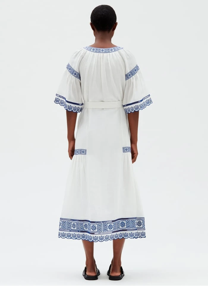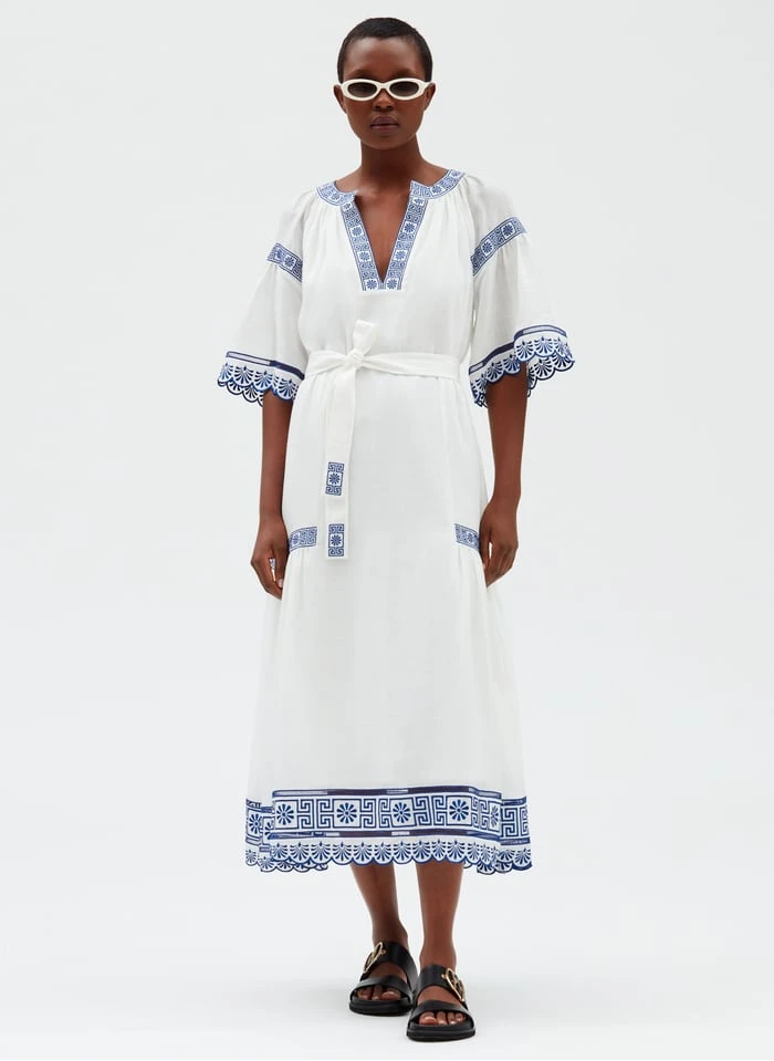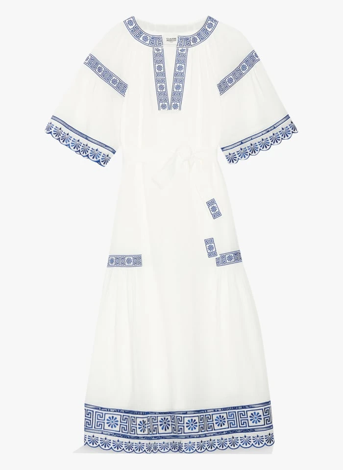Halflange jurk met borduurwerk en Tunesische kraag by Claudie Pierlot voor Dames.