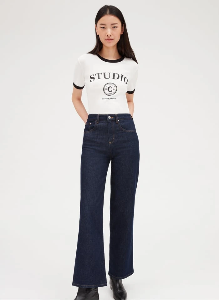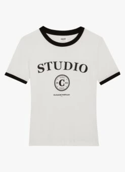T-shirt met ronde hals en print katoenblend by Claudie Pierlot voor Dames.