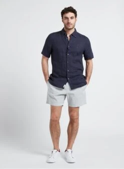 Dit model wordt aangeboden met Regular-fit, linnen overhemd met Amerikaanse kraag en borduursel by TOMMY HILFIGER, Lage, leren sneakers by TOMMY HILFIGER