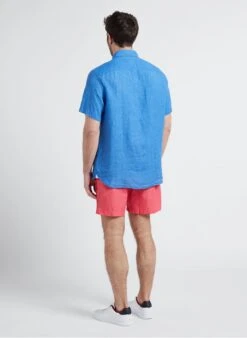 Dit model wordt aangeboden met Regular-fit, linnen overhemd met Amerikaanse kraag en borduursel by TOMMY HILFIGER, Lage, leren sneakers by TOMMY HILFIGER