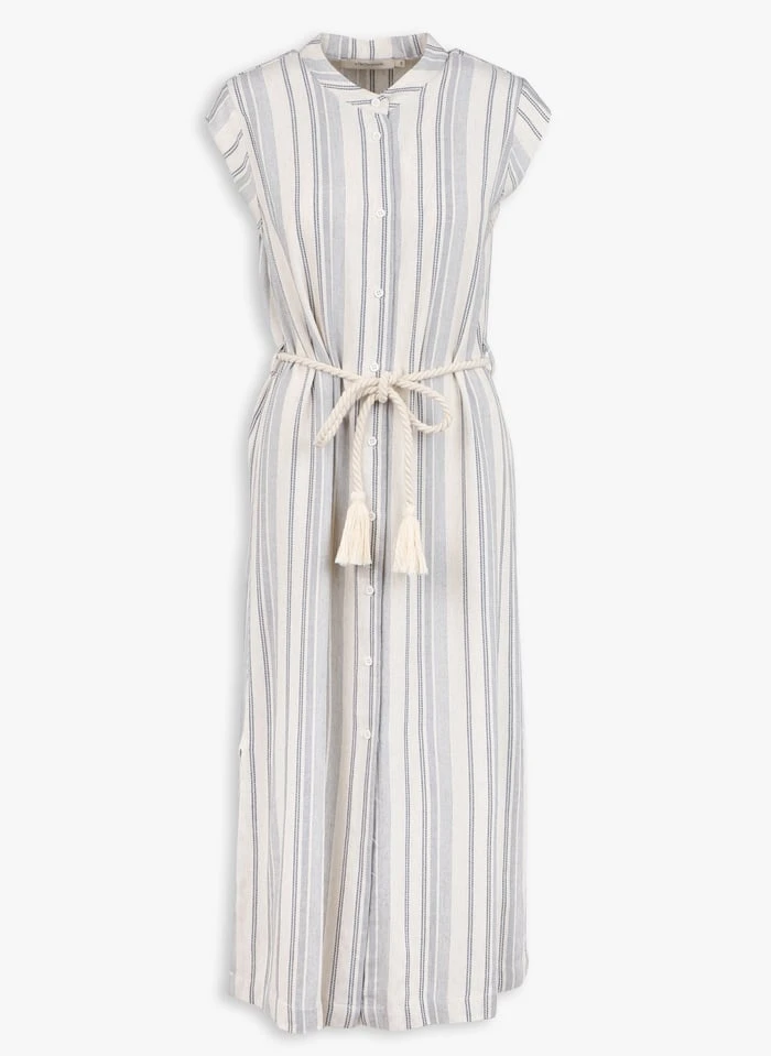 Lange, gestreepte jurk met ronde hals by La Fée Maraboutée voor Dames.