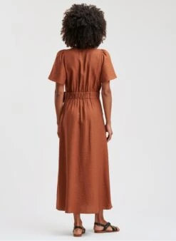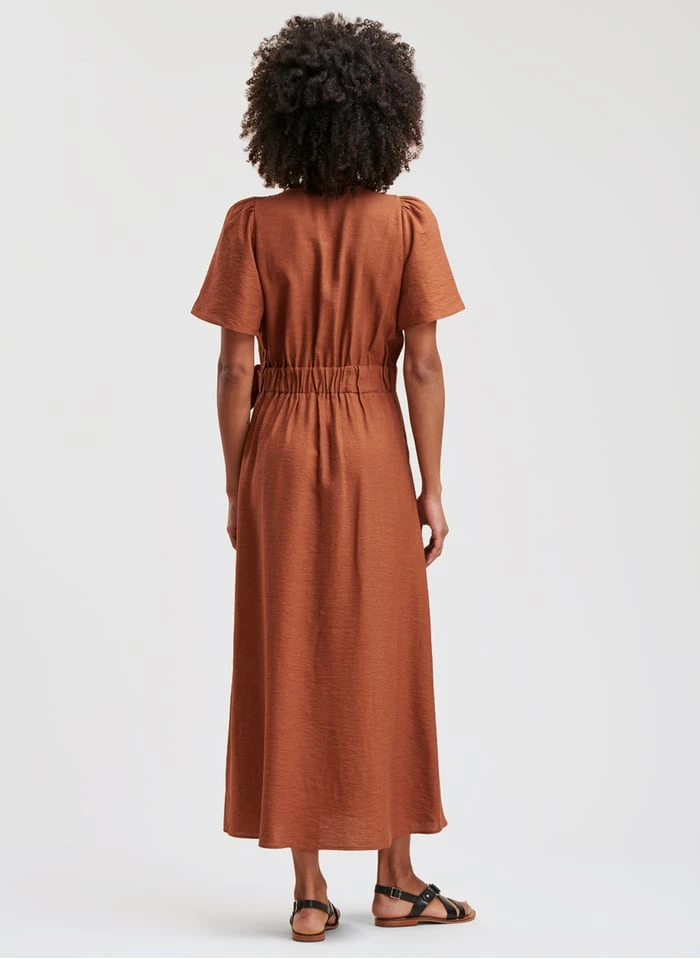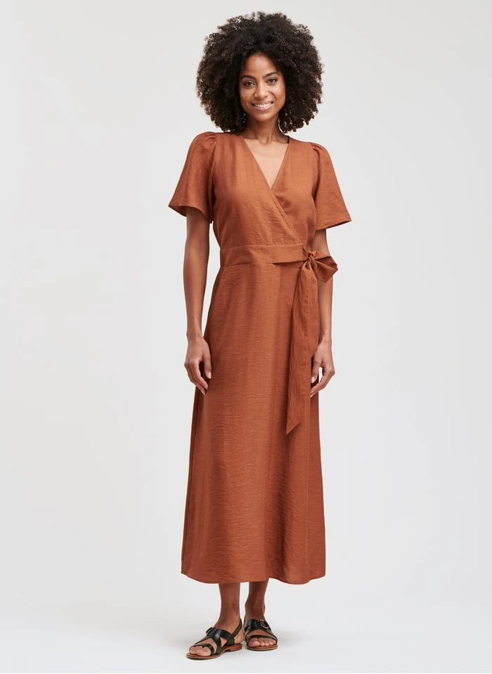 - – Encolure cache-coeur avec système de boutonnage à la taille