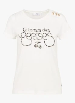Katoenen T-shirt met ronde hals en zeefdruk by Le Temps des Cerises voor Dames.