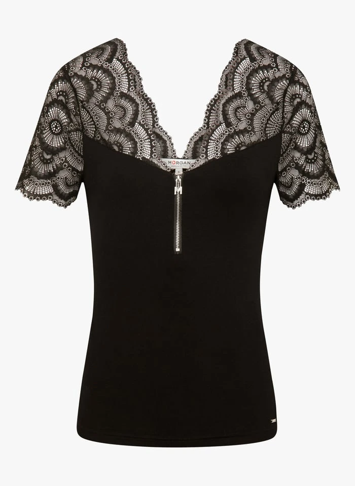 T-shirt met korte mouw en kant by Morgan voor Dames.