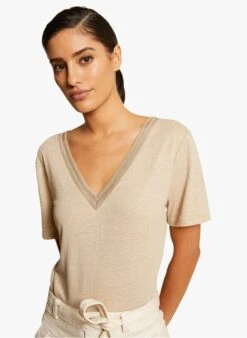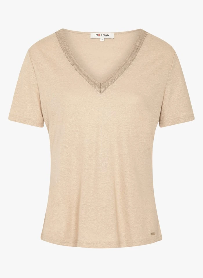 T-shirt met V-hals linnenblend by Morgan voor Dames.