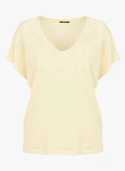 Uitlopend, linnen T-shirt met V-hals by One Step voor Dames.
