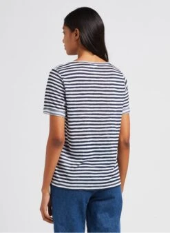 Uitlopend, linnen T-shirt met V-hals by One Step voor Dames.
