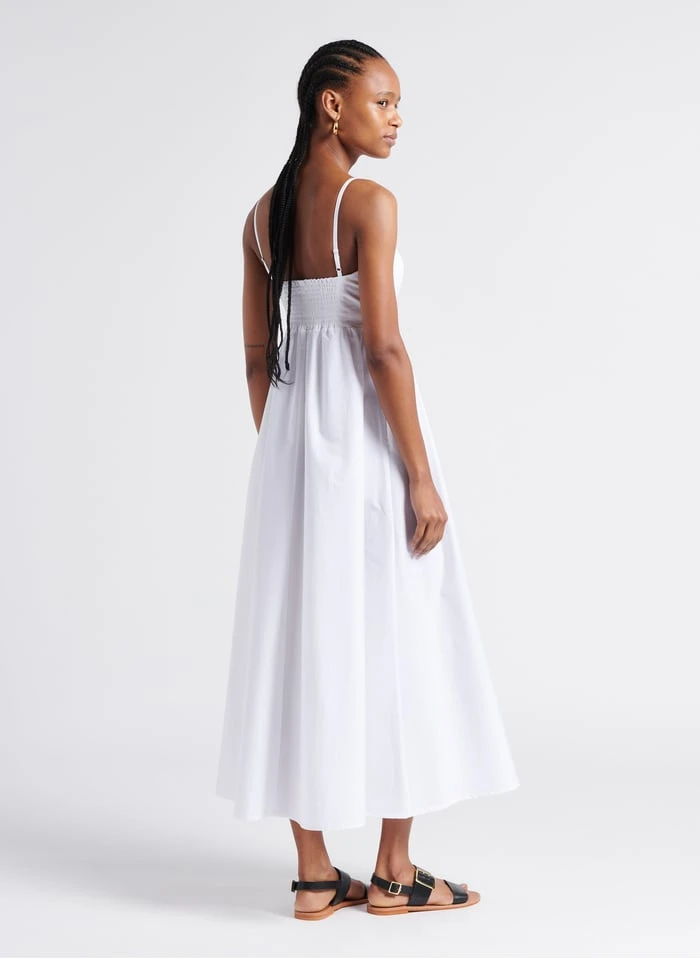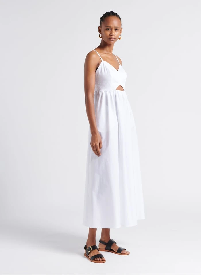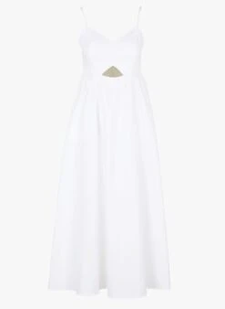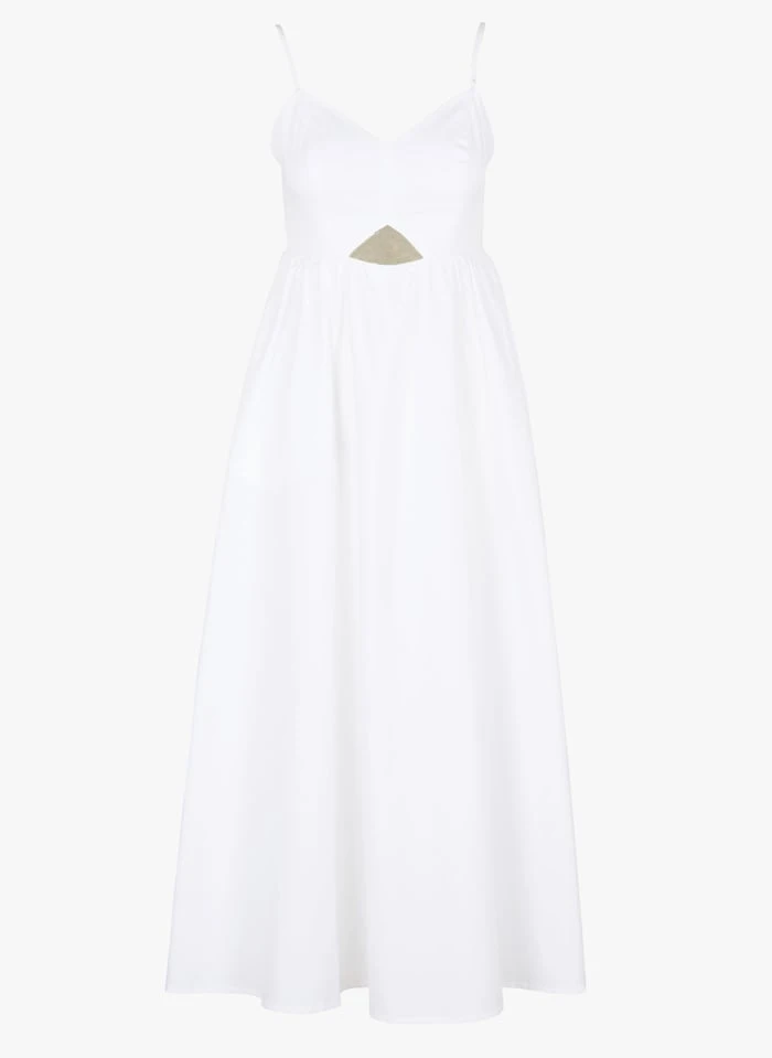 Lange, katoenen jurk met smalle schouderbandjes by Saison 1865 voor Dames.