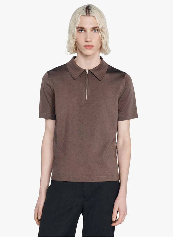 T-shirt met korte mouw en polokraagje met rits by Sandro voor Heren.
