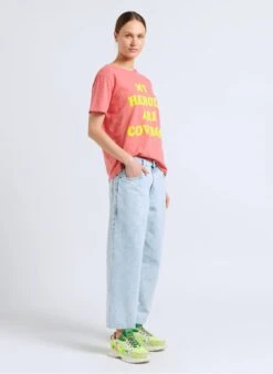 Dit model wordt aangeboden met Katoenen mom-fit jeans by AMERICAN VINTAGE, Lage sneakers van mesh en leer by LACOSTE